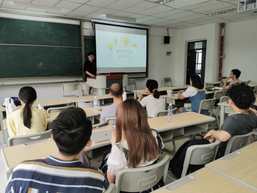 新入职教师中的三位按照抽签顺序进行《从小说到电影》课程的试讲,包括5分钟说课和15分钟试讲,之后老教师提出针对性的意见帮助新教师提升教学技能,最后电影评论中心主任彭可老师加以总结,并与新老教师进行课程大纲的研讨。