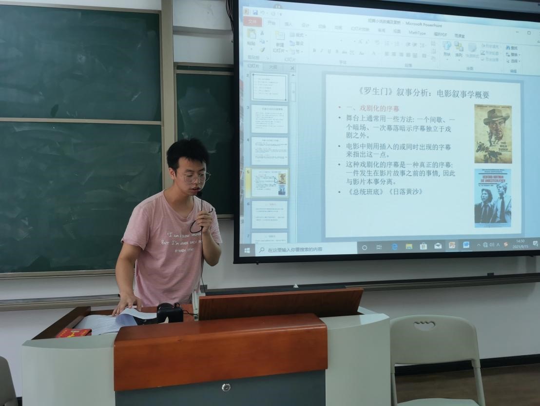 第一位上台试讲的是何雨恒老师,他以影片《钢的琴》为例,细致讲解了电影的视听语言知识,随后张正钰老师以“艺术门类的划分与艺术媒介”为题对七大艺术门类展开讲解并加以对比归类,最后王伟楠老师以《罗生门》为例,讲解了这部电影的叙事结构与特点。
