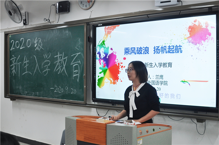 为让外国语学院2020级新生更加了解学院和专业体系,并且能够在今后的学院生活中打下牢固基础,尽快适应学校环境或者大学生活,强化学生素质养成。外国语学院于9月20-21日在天渠教室展开为期两天的入学宣讲会。外国语学院辅导员兰鹰老师、外国语学院主席团们为新生们带来详细的入学指南。本次大会的召开让2020级的新生们感受到学院大家庭的温暖,增强本专业学长、学姐和新生之间的联系,同时让新生更快地融入大学生活。相信在外语学子的共同努力下,外国语学院正在逐步壮大。