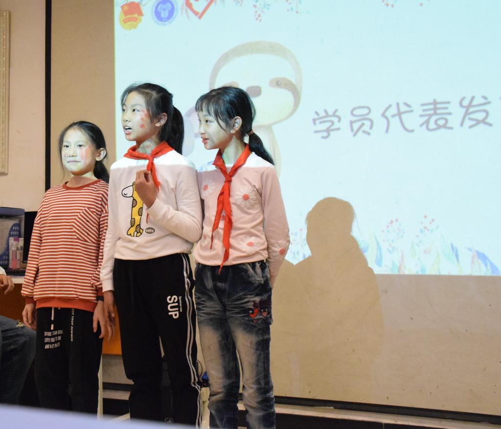 “感谢哥哥姐姐来到这里为我们辅导作业,我很喜欢四点半!”
