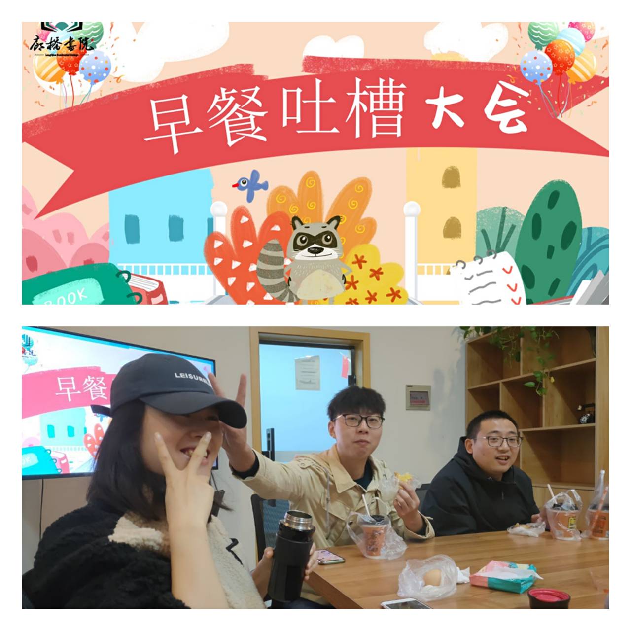 廊桥书院选择早餐会,其最大的优点是,会议气氛格外轻松活泼,更有利于激发大家的创造性思维。同时还有利于提高效率。吃着美味的早餐,说着各自的槽点。“一个团队要进步发展,这一段路程肯定有许多的矛盾。一直以来,在廊桥书院的师生团队中保持“发现问题,解决问题”的良好传统,旨在使书院建设更上一层楼。所以开展廊桥特有的“吐槽”会,”孙庆涛老师语重心长的模样与今天身在“槽点”旋涡中的他有很大不同,但每一句话,都充满了期待与希冀,希望廊桥书院一届四任的全体成员都能朝着更好的方向再次跨出一大步,为建设更好的廊桥书院献策献计。
