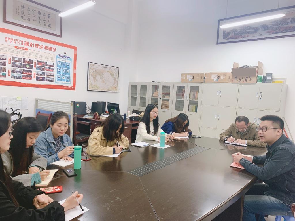 李阳老师主要从三个方面进行了发言。首先,他从系部督导的角度出发对近期新进老师在上课过程中出现的问题与老师们进行了交流反馈,指出:教师在授课时一定要把握好课程的重难点,注意内容的详略得当,让课堂教学更加具有针对性,同时要注意知识点与知识点之间的衔接问题,使整个课堂教学更加连贯与完整。其次,他鼓励教师要充分利用网络课程资源取长补短,丰富教学课堂内容与手段,不断提升教学能力。再次,李老师对教学部即将举办的“喜迎全面小康,青春奋斗有我——纪念全面建成小康社会”主题演讲比赛做了相关工作安排,他强调举办活动的目的是希望将学校小课堂与社会大课堂结合起来,不断丰富和创新思政课教育教学形式,达到理论教学与实践教学相统一,让学生在活动中进一步认识新时代,认识逐步走向伟大复兴的中国,进一步了解全面建成小康社会的伟大意义,从而激励更广大的青年学生立足当下,勤于学习,报效祖国。
