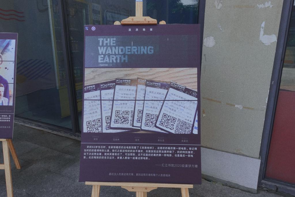 一部电影或许打开你热爱的大门,或许制造了某些相遇和感动,主办方还收集了同学们与科幻结缘的故事以及同学们对一些经典科幻作品的感想与体会,以照片和文字的形式展览于汇江书院一楼平台处。有不少同学被这些故事和影评所吸引,驻足观望。