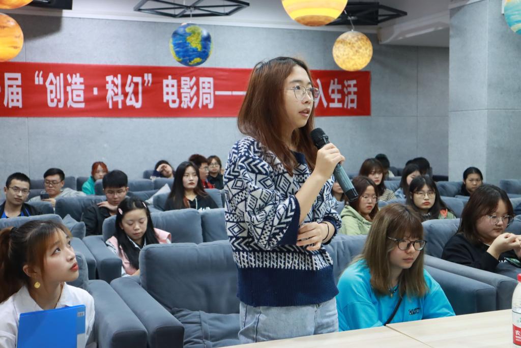 四场电影把同学们带进了四个不同的科幻世界,每一部电影都扣人心弦,令人深思,导演们的头脑风暴,也化作奇妙的电影世界,供同学们欣赏、体会与现实不一样的风景。比如电影《超体》借助旋律的画面和高级的视听语言让观众对人类发展进行了初探,其中的一句经典台词引发了在场观众的思考:“十亿年前,我们被赋予了生命,我们用它做了什么?”当灯光亮起,同学们还沉浸在电影的震撼之中。