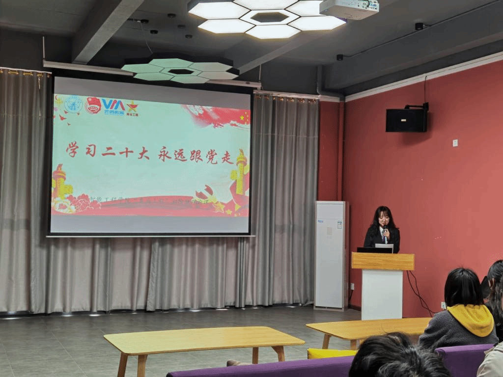殷蓉老师为同学们朗读分享党的二十大精神主题,朗读中殷蓉老师主要提到:弘扬伟大建党精神,自信自强、守正创新,踔厉奋发、勇毅前行,为全面建设社会主义现代化国家、全面推进中华民族伟大复兴而团结奋斗。坚定中国特色社会主义道路自信、理论自信、制度自信、文化自信。殷蓉老师提出:中国青年应有建党的伟大精神以全面推动中华民族伟大复兴,要集中一切力量,排除一切干扰的为国家为党,以及务必不忘初心、牢记使命务必谦虚谨慎、艰苦奋斗、务必敢于斗争、善于斗争。