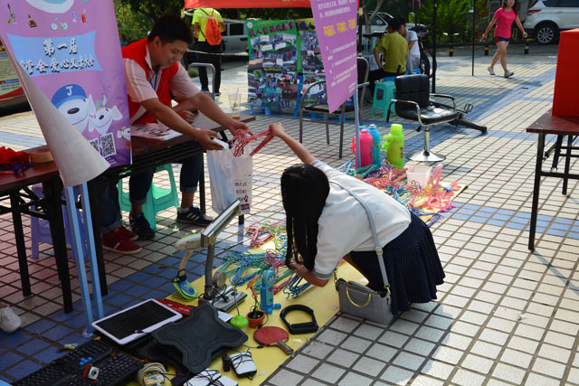 此次活动的所有商品均是由已毕业的2012级学长、学姐无偿提供,同时宿管会学生干部们将所有商品做了细致清洗和详细检查,同学们可放心使用。皮椅、衣挂、暖水壶、键盘、台灯、路由器、小桌子、书籍、储钱罐、鞋架、各种饰品等日常学习生活用品应有尽有,活动一开始就吸引了大量同学参与,场面一度火爆,暖水壶、键盘、椅子非常畅销,不到3小时已基本抢购一空。
