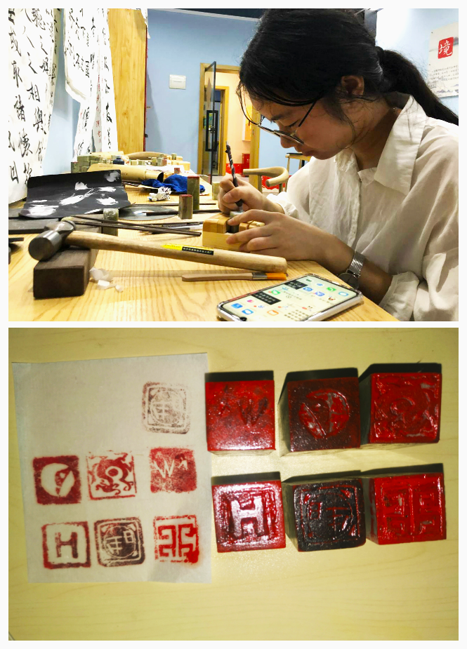 书法雕刻馆:主打工匠精神的耐心,书法是文字的载体,文字是书法的内涵,二者相互依存。在飞速发展的时代,多数人以键盘代替纸笔,甚至提笔忘字。我们不仅要跟上世界的发展潮流,更要沉淀文化的魅力。通过练习,同学们对毛笔的构造:笔锋、笔腹、笔根;毛笔的选择:尖、齐、圆、健;执笔法:擫、押、钩、格、抵;书写方法:用腕法、发力法有了初步认识。