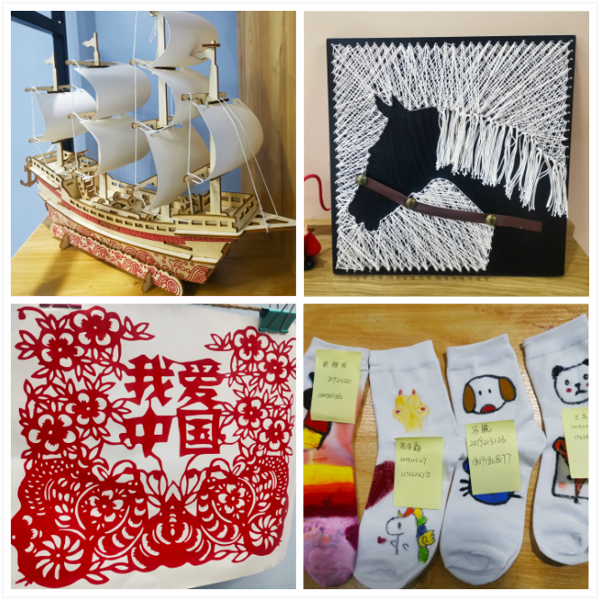 手工剪纸馆:本工坊主抓工匠精神的严谨认真,从简单的事务去影响学生的素质。同学们从最开始的无从下手到后面的创意百出,手中的作品也越来越美观。手工实操过后,参与者纷纷分享了自己在此次课堂中的收获与感想。学生在近距离接触手工艺术的同时,也能动手实践感受民俗文化的魅力。