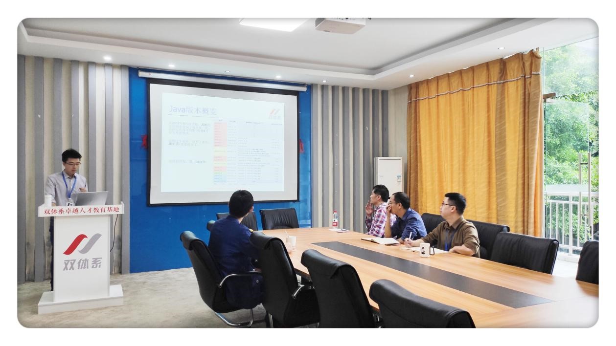 2020年9月14日-16日,双体系创始人吕永生老师莅临我校双体系卓越人才教育基地进行了为期三天的交流指导工作。期间就教学内容、课程设置、疫情后学生心理疏导等问题,与职场、技术老师们进行了交流探讨,并与项目部学员、开发中心学员进行了深入交流。此外,吕老师在15日、16日上午分别为学员们讲授了“登录功能需求与分析”的技术课程和“软技能——代码之外的生存之道”职场公开课。