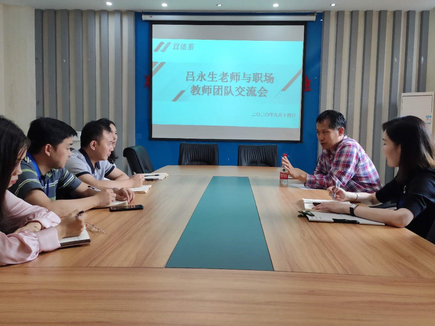 9月14日晚7点,吕老师与双体系各技术老师针对课程设置、课程优化、双体学员培养等问题进行了交流。吕老师指出,技术课程的设计一定围绕学生就业为前提,并在平时的教学中为学生就业找准出口。紧密结合企业需求,切实做好应用型人才培养工作。