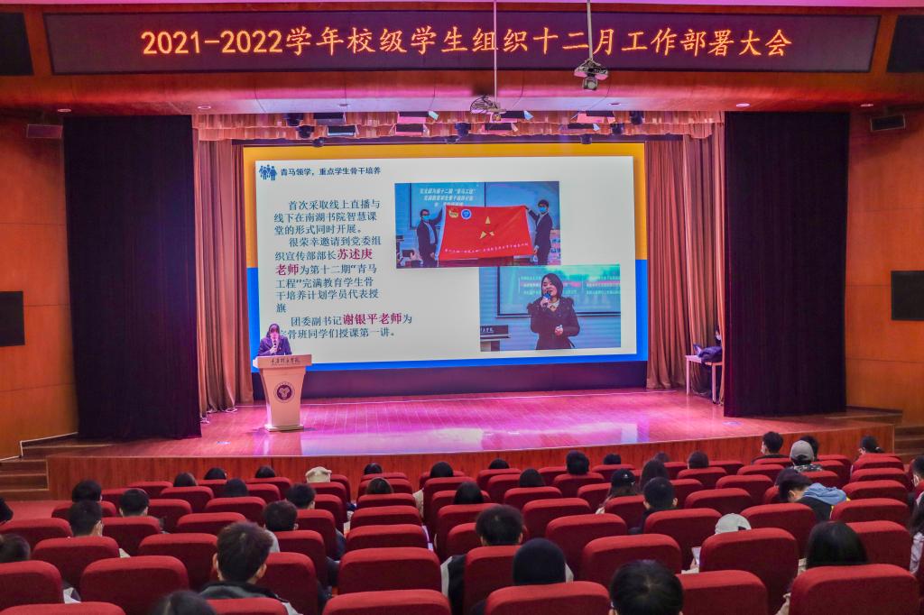为更好的贯彻落实我校完满教育理念,助力完满教育学生工作发展,促进校级学生组织十二月工作的顺利开展。12月7日中午12时15分,团委、校学生会、学生社团联合会、青年志愿者联合会、学生书院联合会、学生体育联合会六个校级学生组织在下里巴人剧场召开十二月工作部署大会。