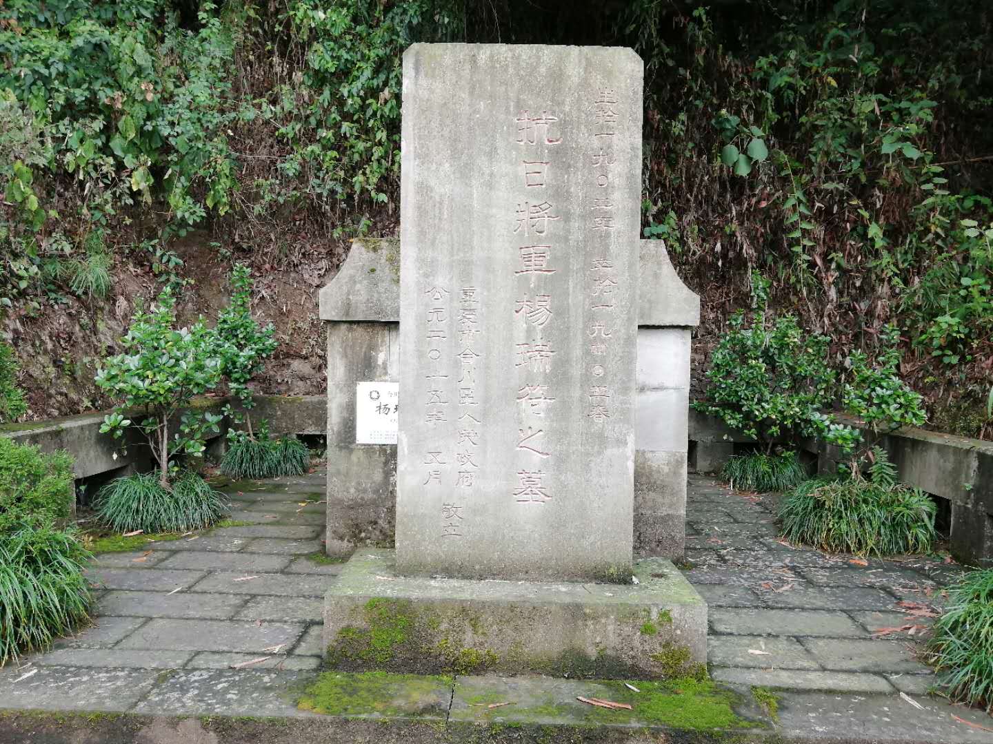 二仙观左侧森森修竹与荒烟蔓草间,孤孤单单地凸起一丘毫不起眼的小坟堆。谁能想到这个破败而荒凉的小坟堆里,长眠的竟是一位精忠报国的抗日英雄,他就是淞沪抗战中率领“八百壮士”死守上海四行仓库的孤军营长杨瑞符。1939年,在四行仓库战斗中负伤的杨瑞符携妻子与内地来到合川养伤,居住于二仙观内。养伤期间,合川社会各界纷纷前来拜访这位抗日英雄。期间,杨瑞符写下了《孤军奋斗四日记》,向世人展示了八百壮士奋战四行仓库的详细经过。1940年,日军轰炸合川,合川县电报局为躲避日军轰炸,强行要求杨瑞符搬离,致使抗日英雄倍感凄凉,气愤中伤病复发而死。二仙观道长感念其抗日功勋,捐资购买楠木棺材将其葬于二仙观旁。2009年,杨瑞符墓被确定为“重庆市抗战遗址文物保护点”。几位老师为杨瑞符营长的抗日精神深深感动,在墓前驻足沉默良久,深切缅怀这位抗日英雄。