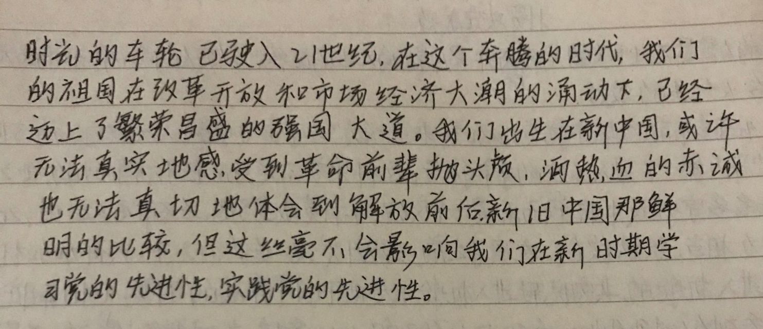 鲁迅先生曾经说过,“青年所多得是生力,遇见深林,可以辟成平地的,遇见旷野,可以栽种树木的,遇见沙漠,可以挖掘甘泉的。”时代的进步需要每个人的推动,而时间会流逝,留下的就是青年人,国家的发展需要依靠青年人。一代人有一代人的长征,一代人有一代人的担当,先辈们为我们创造了美好生活,作为新时代青年人,时代赋予我们担当的使命,我们也该不负众望,加强自身修养,学好专业知识,传承民族精神,延续红色火种,书写无愧于时代的壮丽篇章。