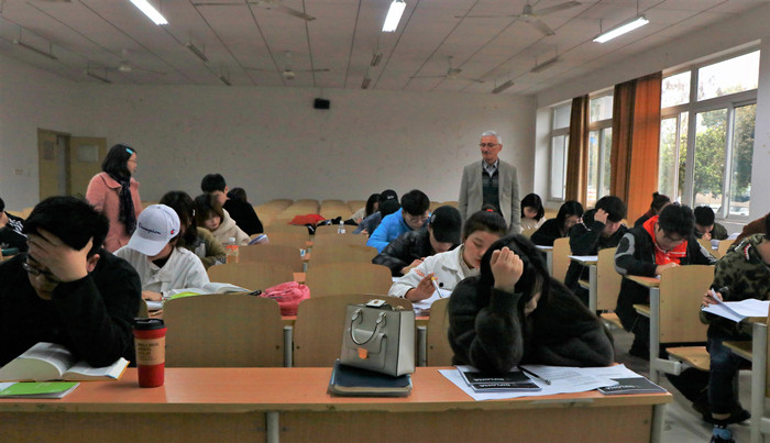 外教Wolfgang此次已是第二次来到移通学院授课,虽已年过古稀,但精力异常充沛。课上,外教Wolfgang倾其所有,为同学们讲授理论知识,对于一些重点难点,还会找一些经典案例,带领同学们一起剖析。课下,外教Wolfgang喜欢展示自己在德国的生活,带着同学们一起欣赏他用相机拍出的德国的美景。偶尔,同学们还会利用课余时间邀请外教Wolfgang一起去郊外踏青。对于同学们在专业知识上的一些疑问和今后去德国留学的一些问题,外教Wolfgang总是能够不厌其烦的为同学们讲解。