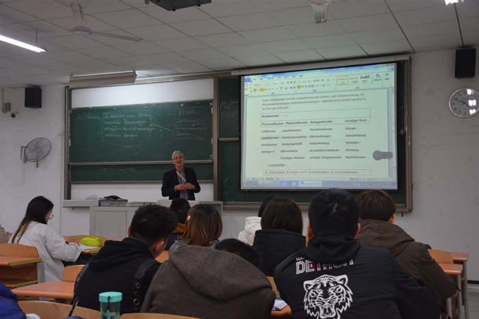 3月4日至15日,中德学院2016级工商管理(中德)、工商企业管理(中德)专业的同学迎来了本学期第一位专业课外教——来自德国北黑森应用技术大学的Wolfgang Becker,为同学们讲授成本会计课程。成本会计课程是工商管理、工商企业管理专业的专业课程,旨在让学生在掌握会计基础理论的基础上,学习掌握成本会计的基本理论和技能,能胜任企业对成本会计工作岗位要求。