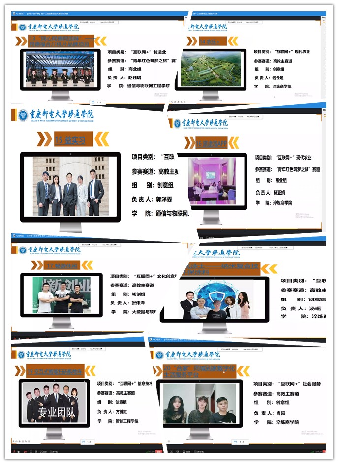 为全面落实习近平总书记给中国“互联网+”大学生创新创业大赛“青年红色筑梦之旅”大学生的重要回信精神,深入推进大众创业万众创新,加快培养创新创业人才。促进创新驱动创业、创业引领就业,切实培养和提升我校学子创造精神、创新意识和创业能力。重庆邮电大学移通学院创业学院特于7月27日下午15:00在线上举办重庆邮电大学移通学院第十三届创新创业大赛校内决赛。