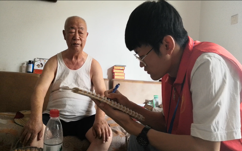同一时间,孟起丞同学也回到家乡,通过走访河北省沧州市青县一位退休老党员吴玉志来感受传承“红色”精神。