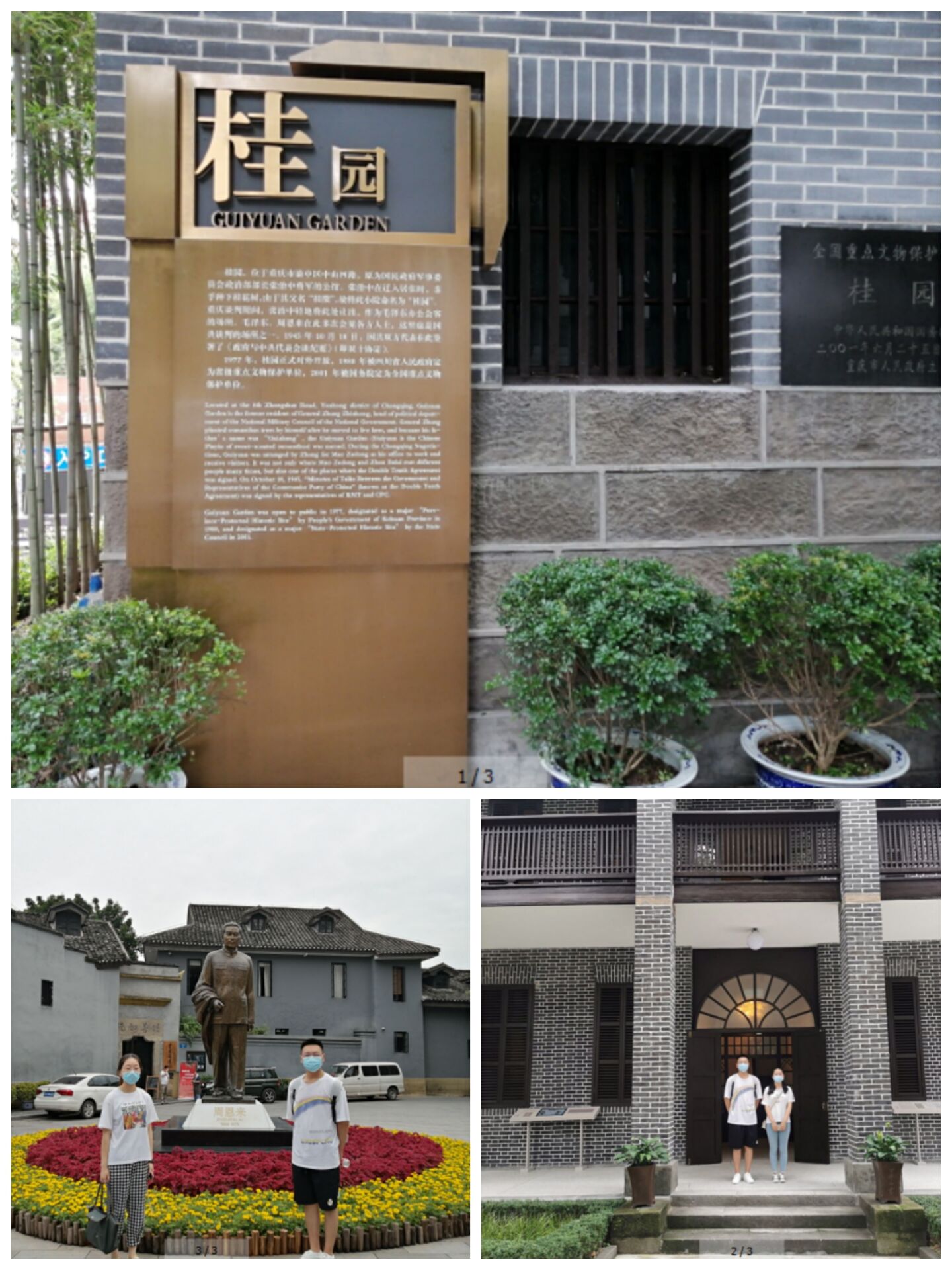2020年7月10日,“寻忆”渝乡红色文化实践团成员们来到桂园和周公馆,探索红色革命记忆,学习红色革命故事,感受红色革命精神。周公馆中南方局的先辈们在敌人的眼皮子底下进行着党的秘密工作;桂圆中的毛主席,为了能够和平建国,使人民免受战乱之苦,甘愿以身犯险,深入敌穴。舍生取义,视死如归,这样大无畏的红色革命精神是实践队成员们在周公馆和桂园学习到的红色精神,相信实践队成员们也会努力将此精神传承下去。