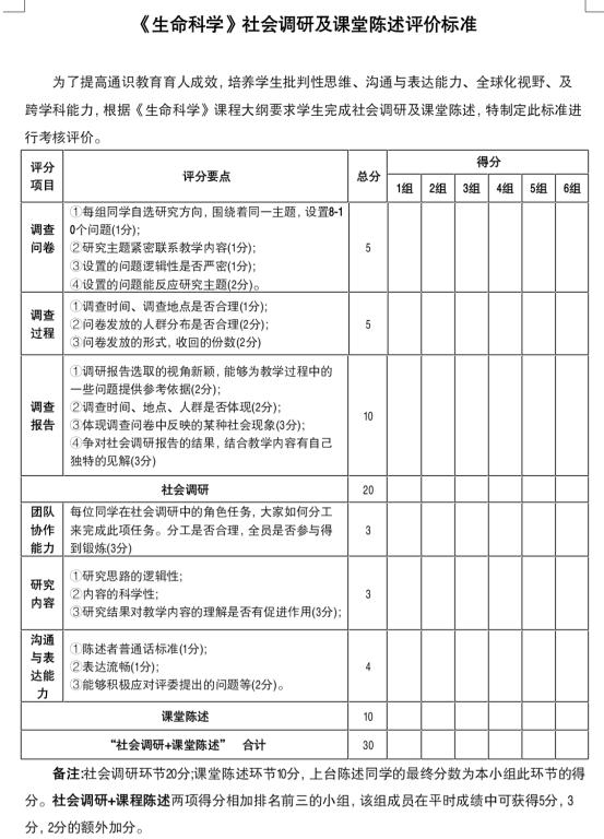 学习是一个循序渐进、不断探索求知的过程。在《生命科学》教学过程中,通识教学部陈春彦老师,结合新课程大纲的要求,注重学生实践能力的培养,要求学生根据已学知识围绕调研主题提出问题并开展社会调研,在调研过程中不断反思、探索、实践,寻求答案,使得课堂教学与课外实践相辅相成,达到通识教育全方位育人的成效。