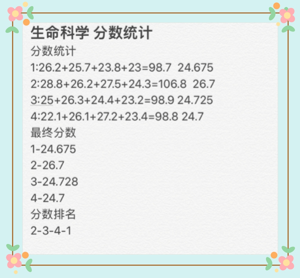 陈述结束后,每一位汇报人都沉着冷静地应对评委的点评,从问卷设置、调查对象人数、问卷收集、调查结果是否反映了某一社会现象、提出的解决办法等方面回答评委的提问,获得了评委的高度认可,课堂氛围十分融洽。评委结合《生命科学》社会调研及课堂陈述评分标准慎重打分,为保证结果的公平性,由记分员去掉最高分和最低分然后进行平均分,评出了前三名的小组。