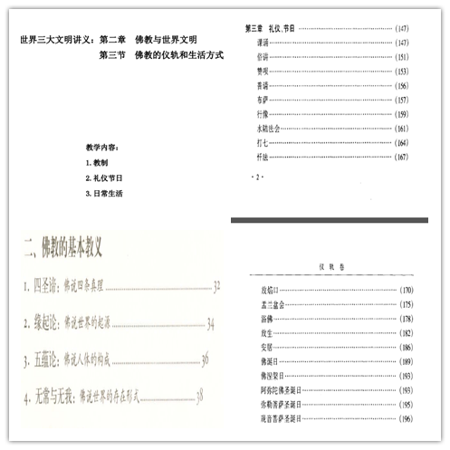为了实现通识教学部“知识+能力+素养”的育人要求,提高学生的自主学习能力、阅读能力和书面表达能力,教授《世界三大文明》课程的老师们从浩瀚的书海中,遴选出适合学生阅读的章节,并利用寒假的时间,把这些章节整合成了适合教学大纲要求的配套讲义。此讲义从世界三大宗教的历史入手,结合教义、礼仪制度以及教徒们的生活方式,来探讨其对世界文明的影响。
