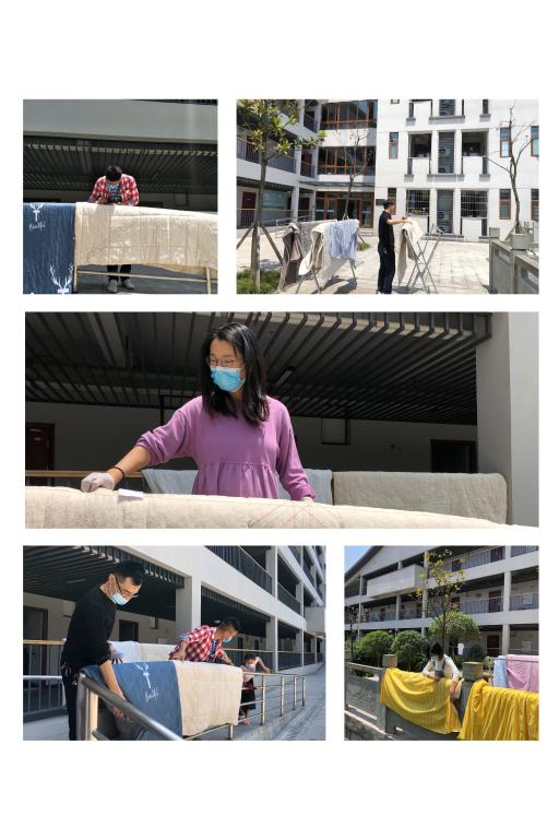 “尘封”的寝室成为同学们最为担忧的地方。趁着明媚的阳光,结合学校疫情防控工作需要,2016级和2017级的辅导员们率先开始“云接单”,在线帮助同学们晒被子。“老师,帮我把绿植放到阳光下晒晒”、“老师,帮我扔一下桌子上的零食”、“老师,帮我晒一下我的棉被”。在接到订单后,辅导员吴家家、粟丹、张颖超、李凤和蓝剑峰,以及书院发展导师陈钎华纷纷行动起来,暖心的举措使同学们忍不住点赞。
