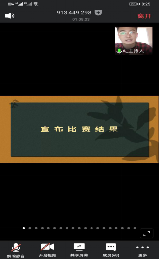 在比赛中,九位参赛选手不仅展现了自己的多才多艺的本领,还展现了自己对主持的无限热爱。比赛分为两轮,过程可谓是精彩纷呈,让我们见识到了大家的应变能力和实践积累,大家真的是腹有诗书气质华,挑战再大也不怕。看我们的选手,个个能耐,反应灵敏,应变自如。字正腔圆、语言流畅、活力四射的主持充分显示了选手的实力;风趣的谈吐,精彩的互动,让我们仅仅是在电脑前观看都感受到了气氛的融洽。各位选手也纷纷得到了评委老师的肯定。