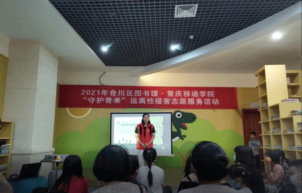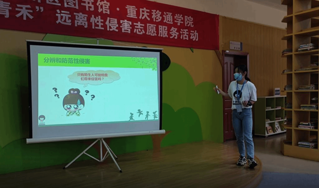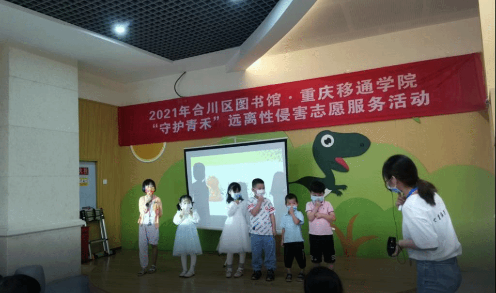 9月19日,正值中秋佳节假期第一天,重庆移通学院“守护青禾”志愿者支队来到合川区图书馆,为小朋友们带来一堂“防性侵”安全教育课。本次活动是支队这学期第二次外出授课活动。本次活动由杜增凤担任讲师,黄康琳、罗明媛和陈艳三名同学担任助教。