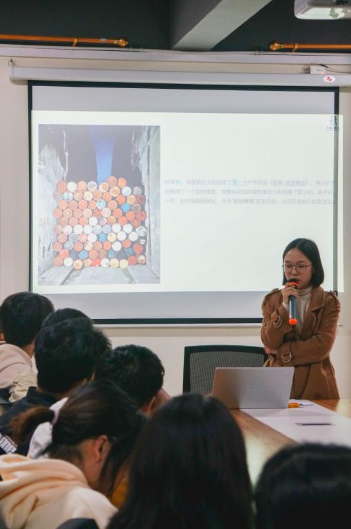 邹丹老师讲解了大地艺术与建筑景观设计,以艺术家林璎为讲解代表,通过展示林璎的作品视频和《反越战纪念碑》、《输入》等环境艺术作品来体现艺术家林璎的“ 我看到自己存在于边界之间,一个对立交汇的地方;科学与艺术,艺术与建筑,东西方。我的工作源于让人们了解周围环境的简单愿望。”观点。
