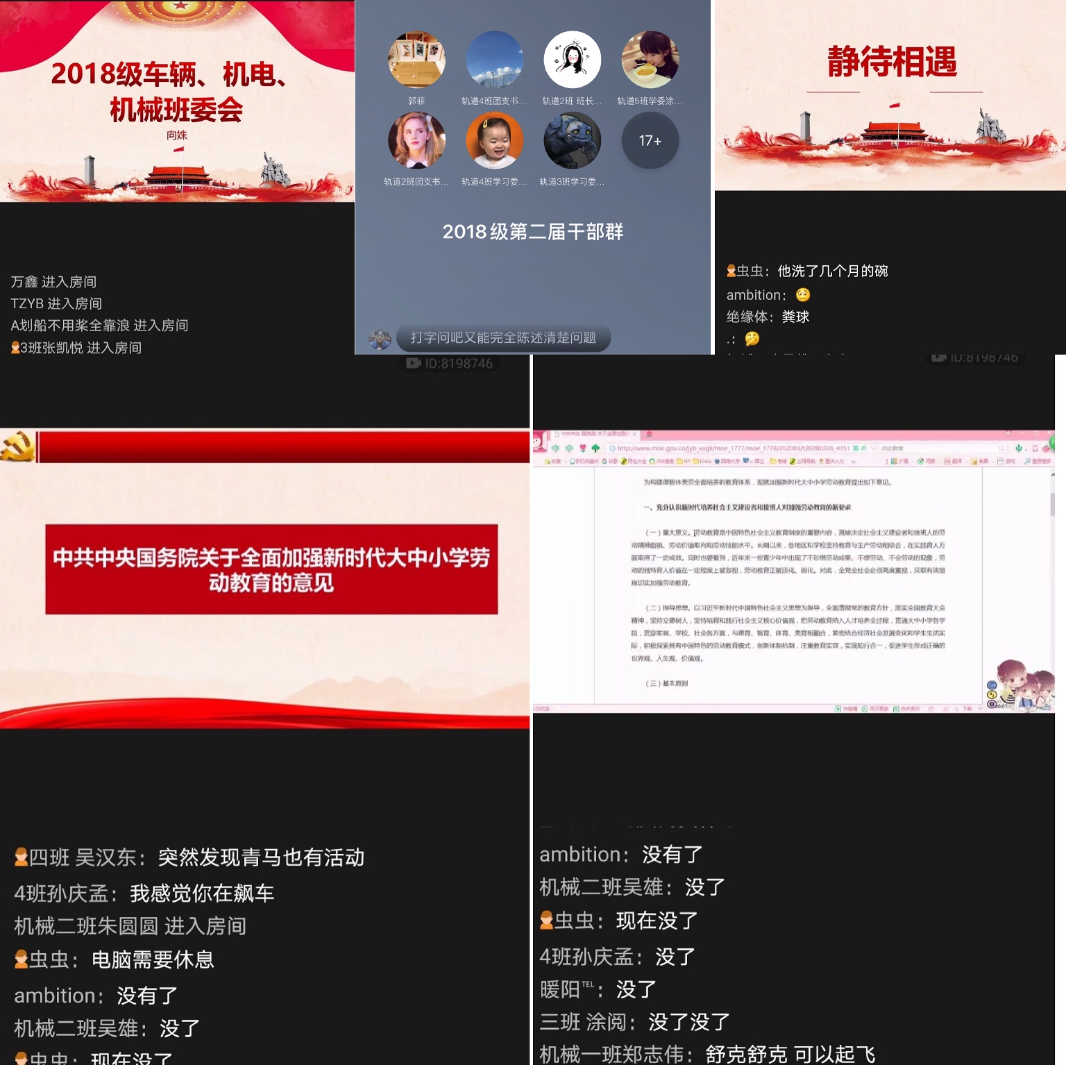 自新冠肺炎爆发以来,智能工程学院学工团队全面落实学校防控工作各项部署,主动作为,扎实工作,日常管理以学生生命健康为首要目标。2016级到2019级的辅导员们分别以班委和寝室为抓手实行全覆盖式的学生日常管理。刘桃老师结合近期调研中出现的上课迟到、上课效果差等情况进行总结,着重要求同学们强化自律意识,按时上下课,提升上课效果;孙良顺老师通过对疫情打卡和学风建设的解读,有利于在学生群里树立良好的思想意识;粟丹老师从专业角度出发,推荐2020“西门子”大赛和对话“智”造者之电气职业规划讲座,鼓励同学们行动比想法更重要。辅导员们多角度的互动,多领域的拓宽管理范围,提升青年践行力。