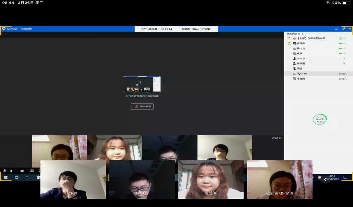 而周四上午8点曾璐副教授则用来一种创新的方式给同学们拉开创新管理的序幕。网上见面的方式,不仅让原本睡意朦胧的学生顿时活跃起来,也拉近了师生间的距离。曾老师温柔的给设计与创新管理的同学们讲解创新的概念和重要性,融入管理学的相关知识点。让同学们感受到创新意识和管理学的美妙融合,碰撞出不一样的火花。生活中的创新无处不在,管理的艺术遍地开花,不仅从课堂上讲解创新管理的知识点,更培养学生的创新意识和管理思维。