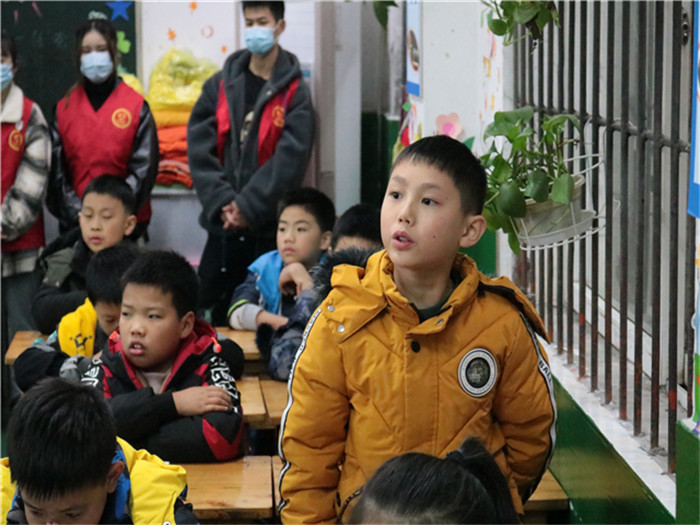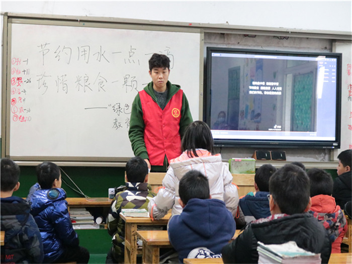 志愿者们刚到教室外,一周未见的同学们并没有因为天气的严寒而无精打采,反而以活泼开朗的气象带动了刚来的志愿者,挥舞着小手并热情欢迎他们,“终于等到了红马甲哥哥姐姐啦”。在活动中,志愿者们寓教于乐,将课堂的主动权交给了同学们,在观看宣讲视频的同时让其主动寻找并发现“为什么资源会被污染或减少”、“浪费资源会导致什么”以及“我们应该怎样去保护节约资源”等问题。同学们也积极互动,轻松、愉快的氛围洋溢在整个教室。