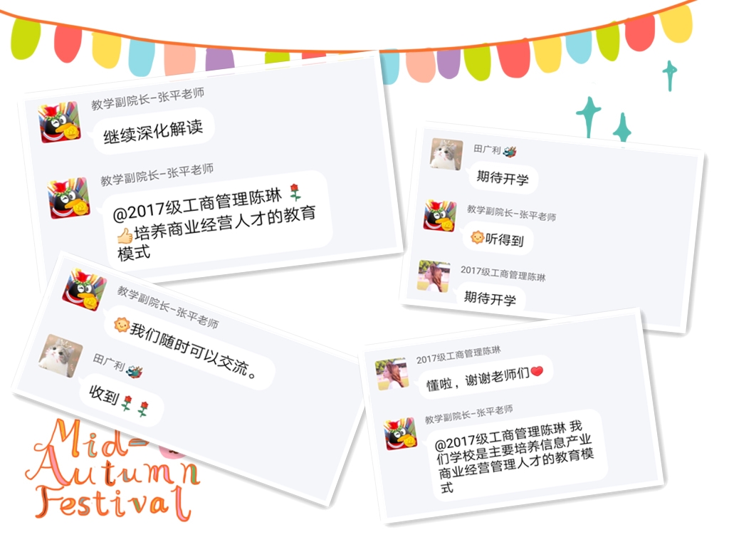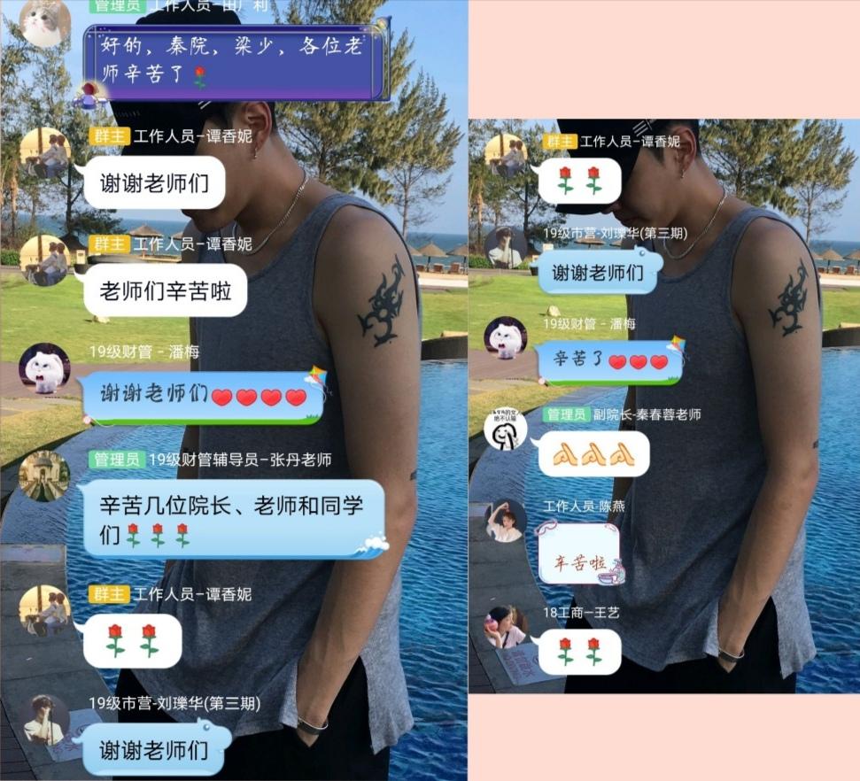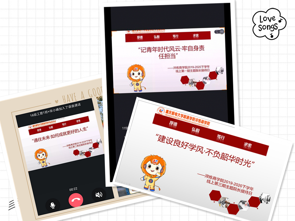 2020年3月,一个对国家对个人来说都极为关键且特殊的月份,疫情带来的影响虽然隔离了人群,但隔离不了浓厚的师生之情。为了解学生线上教学的学习情况及自身发展情况,淬炼商学院3月共开展了三期线上院长系列活动。参与此活动的有淬炼商学院副院长秦春蓉博士、副院长张平副教授、副院长梁少锋老师、教研室的老师们、辅导员以及不同专业、年级的学生。线上交流会不仅打破了平日里面对面害羞的情绪,也能让来参加的同学们更好地吐露自己的心声与困惑,提供构筑师生友谊、融化师生隔阂的更便捷的沟通交流平台。