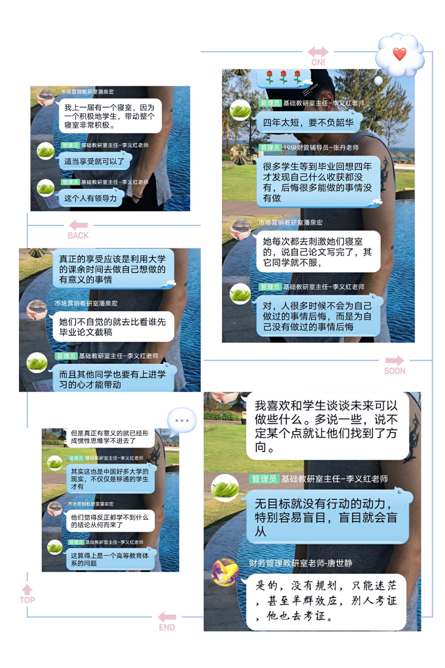 良好的学风不仅是建设良好院风的基础更是建设良好校风的重要组成部分,学风的好坏不仅影响着教学质量的提高和人才目标的培养,更是学生成才的关键所在。疫情之下,老师们通过各种渠道为同学们进行线上教学,其效果如何,关键还要看学生自身居家学习的自控能力,老师虽是引路人、指导者,但同学们最终还得从自身出发,增强自律性,提高自主学习能力。淬炼商学院基础教研室主任李义红老师也提出学生要加强自学的能力,只有无与伦比的专注,才有超乎想象的回报。大学短短四年,在人生道路上短短划过却是心头的朱砂,重要至极。自律自省是在大学这个转角与大家拉开差距的跑道,规划好四年的青春时光,充实过好每一天,才能不负韶华。