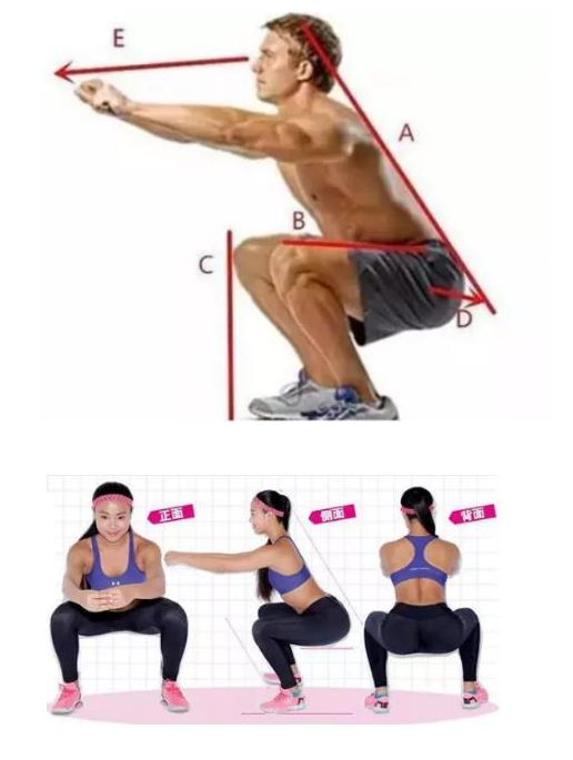 1.站立,腰背挺直,双手向前伸直;2.双脚分开,与肩同宽,脚尖向外;3.下蹲过程,膝关节可以小于90°;4.深蹲时膝盖的高度不要超过脚尖。注意,深蹲整个过程,腰背一直保持挺直。