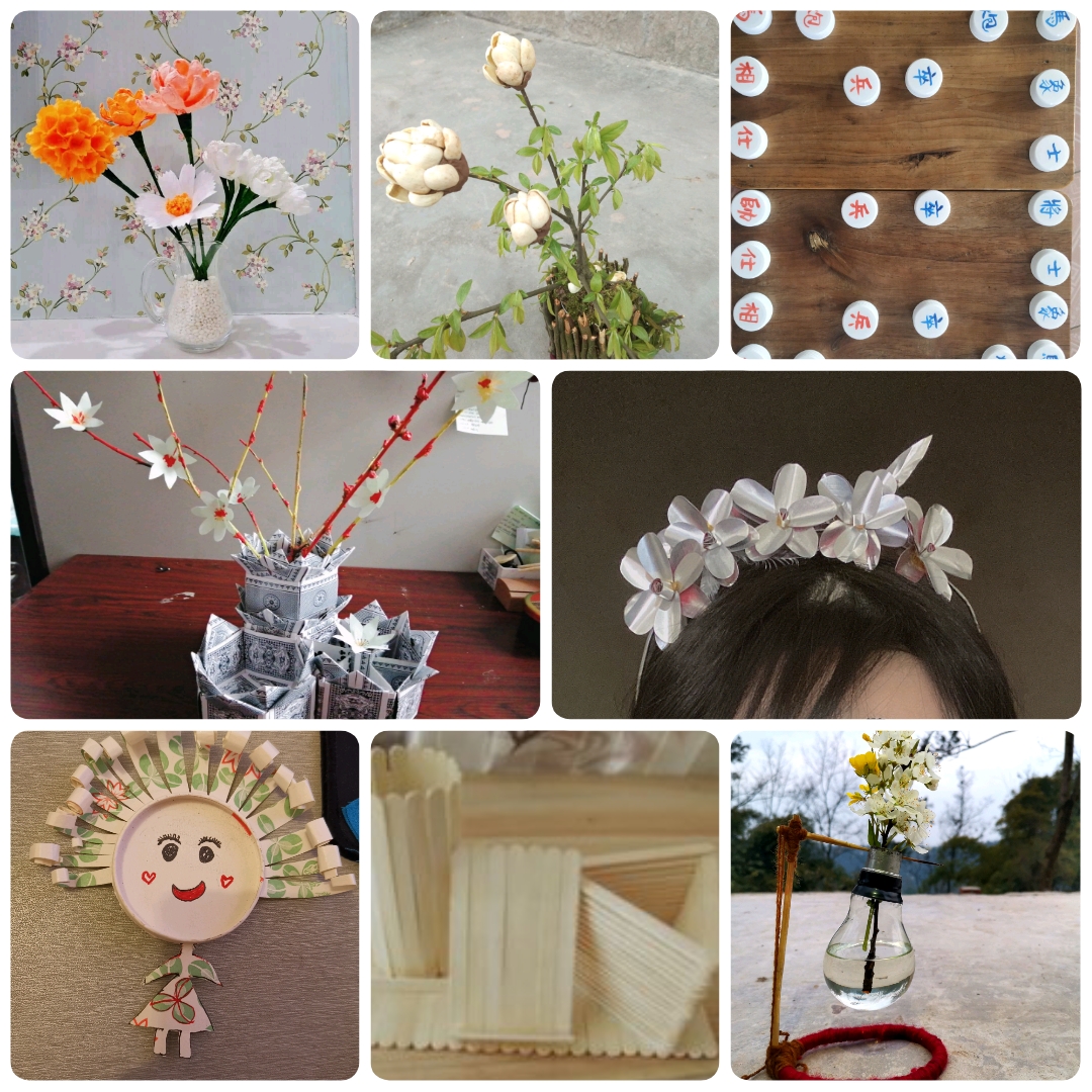 当同学们开始了解环保,就会发现只要肯留心,环境保护就在身边。废旧的钨丝灯泡、易拉罐、瓶盖、木棍、扑克牌、蜡烛……同学们的制作材料都是生活中常见废弃物品,在同学们手中摇身一变成了发箍、象棋、花瓶、致敬防疫一线人员的贺卡,更有很多同学将它们变成了创意宝物,从中感悟生活、发现生活中的美。生活中并不缺少美,只是缺少发现美的眼睛,生活中也不缺乏环保实践,只是缺乏对废弃物品的有效再利用。“变废为宝”不应仅仅只是一句口号,环境保护也不该仅仅是一种概念、一句口号,更应践行于我们生活之中,存在于我们每一个的身边。