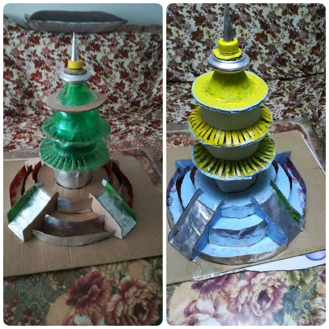 “垃圾是放错地方的资源”,通过“资源”再利用变废为宝,既能体现环保价值,又能通过作品传达的寓意,还能为公益尽一份力。活动中,同学们围绕“绿色行动、公益环保、抗击疫情”理念,利用家中废旧物品进行工艺品制作。随手可丢弃塑料瓶被制作成北京天坛,儿时记忆中的雪糕棍被制作成精巧的笔筒花瓶,一枚小小的塑料瓶盖、简易易拉环也可以被制作成象棋和发饰……一件件废旧物品在他们手中变成了精致的环保工艺品,给平凡无奇的废品赋予了新的生命。