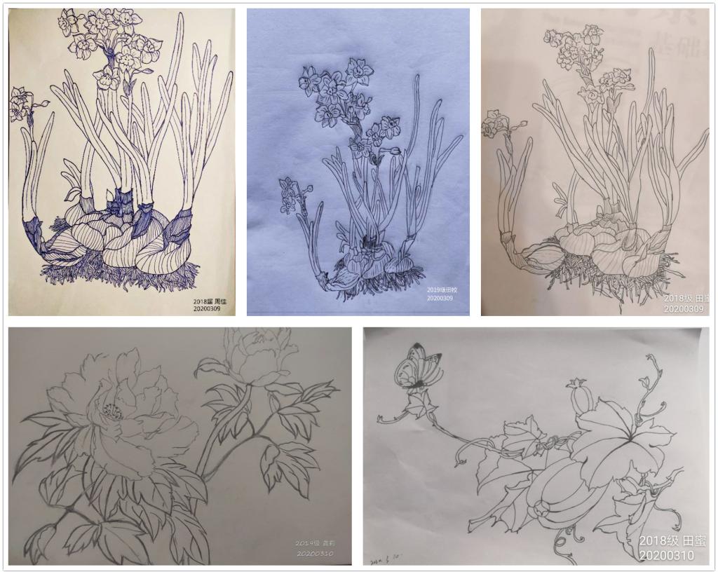 考虑到不同学员间的专业差异,课程计划内容由浅入深,李聪在第一天始终对学员们强调“打破”,打破对传统艺术的认知,每个人都如同一张白纸。不积跬步无以至千里,凭着日常生活的积累与摸索,终会对设计养成自己的理解。服装、风景、人物、鲜花的临摹经过同学们耐心的描绘终于浮现在自己眼前,一笔一笔的勾勒,练术更修心,其成就感不言自明。