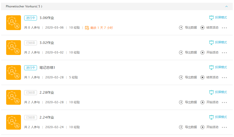 自学校确定“停课不停学”的方针以来,中德应用技术学院德语教研室制定了不同年级、不同德语课程的具体教学方案,做到一课一案、一级一案。根据学校统一课表,任课教师在固定上课时间通过各直播平台(如QQ群、腾讯课堂、雨课堂等)进行课程讲解和作业讲评,教师通过QQ群及时通知并组织学生在家通过不同端口进入“在线课堂”,在课后通过“云班课”平台布置朗读、听力等作业,并通社交平台与学生进行线上交流或答疑,做到“离校不离教,网上来指导”。