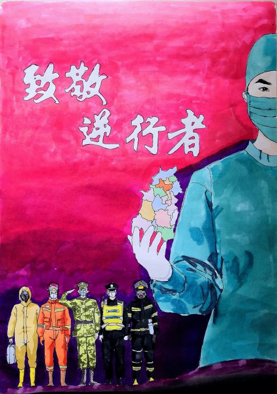 致敬逆行者,他们是医生,救死扶伤;是警察;是建筑师;是志愿者,还有很多很多为这次疫情贡献自己力量的人们……他们忘我工作,舍己为人,无私奉献,各在一座城,守护一国人。遍地英雄的中国,全国上下众志成城,齐心协力抵抗这次疫情。这幅绘画为了歌颂这些天使,寄托了我的敬意与心愿,英雄逆行,武汉必胜!