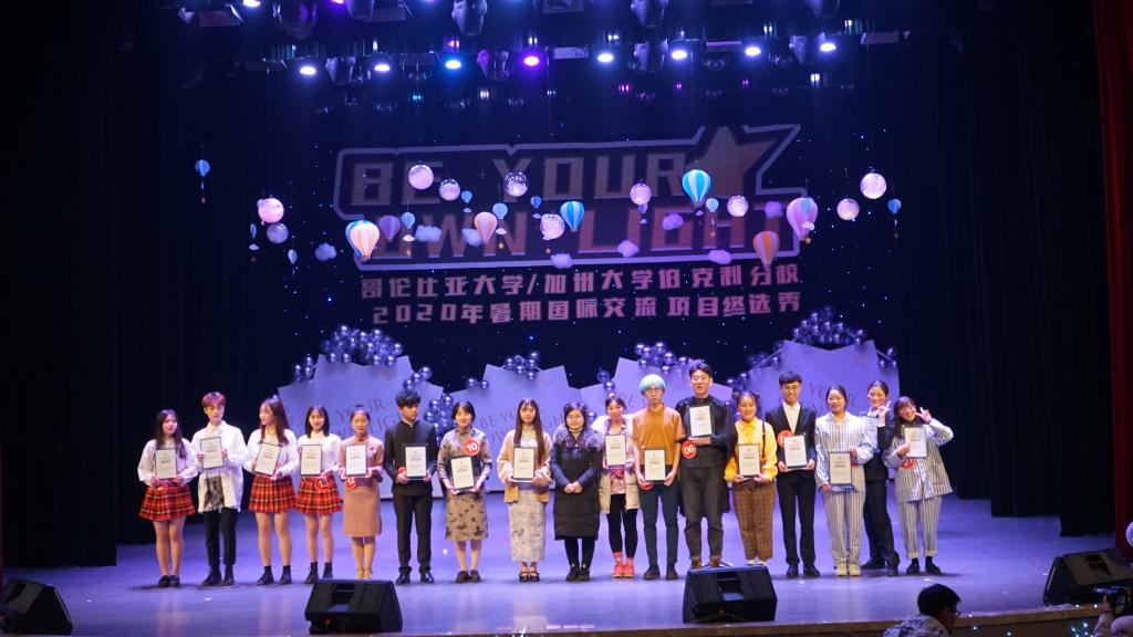 400余名选手历经类型初选、材料审核、完满选拔、类型决选、语言考核、网络投票等多个环节,分别通过创意主题文章撰写、主题演讲、风采展示等多种形式,角逐出了110个出国交流的资格,其中完满教育类50人,商科教育、通识教育、专业教育共60人,最终共有32名选手,进入国际交流项目终选秀的舞台,角逐哥伦比亚大学、加州大学伯克利分校2020年暑期国际交流项目20名候选人席位!