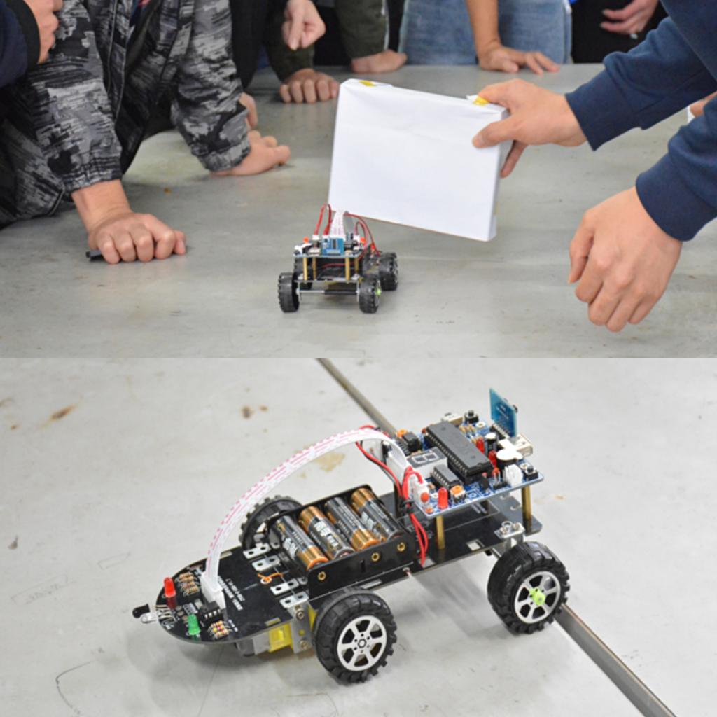 决赛前由专业导师讲解电能小车循迹避障编程教学及决赛的比赛要求和评分规则。各小组编程实现智能小车避障功能、数码管显示数字和电机运动状态控制以及实现红外遥控器控制小车的运行状态。在专业老师团队的指导下,同学们经过一整天的学习和努力,完成了他们的作品,且参赛作品水平较高,专业性强。为老师与学生之间的深度交流与沟通提供了更加便捷的平台,同时也真正做到了以赛促教,以赛促学。