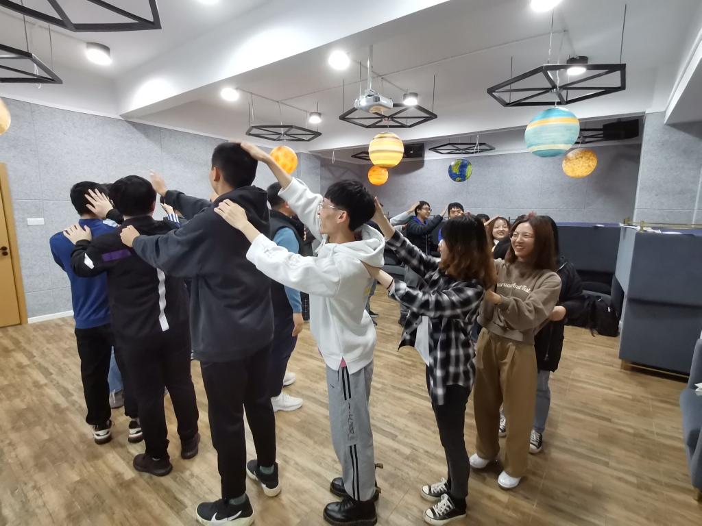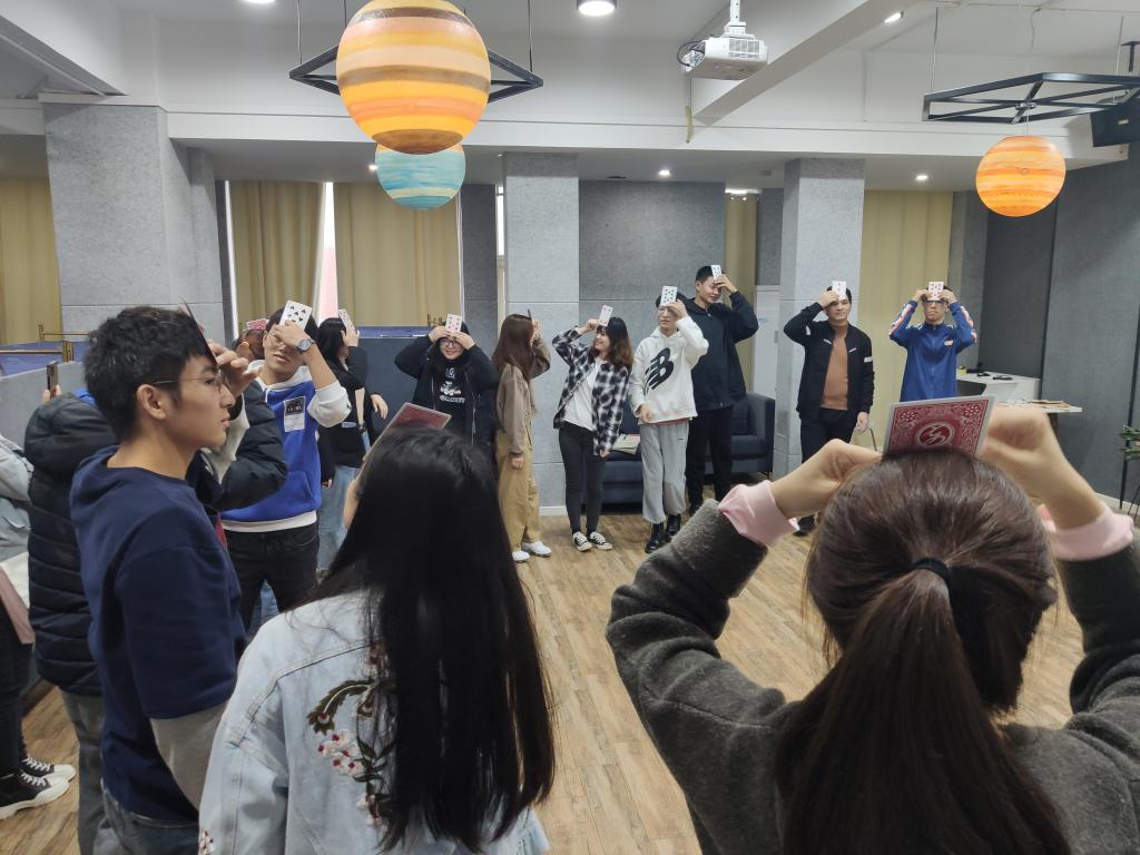 紧接着,佘老师又带领同学们体验了“百万学堂”、“扑克脸”、“商战”、“拥抱握手和再见”等几个有趣又引人深思的团队游戏。每一个游戏都发人深思,通过对同学们思维方式的解读,佘老师引导大家转换角度,积极思考,“勇于打破思维里的墙”。本次培训课程持续时间近两小时,但对于同学们来说却仿佛弹指之间。在轻松愉悦却又引人深思的培训课程中,每一位同学表示都受益匪浅。