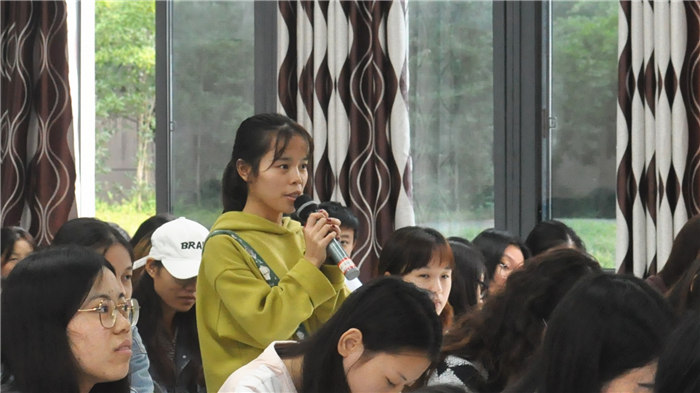 活动刚开始,钟敏老师首先向同学们提出问题(让同学们回答对就业的想法以及对工作应聘认识),由此引出“就业”这一关键字眼。随后,17级英语一班的彭艳同学回答道:她希望自己面试的岗位更偏向于顾问方面,并提出大学生就业难这一问题,从而讲述自己对工作招聘的想法。她表示自己正在为跨专业法律考研做准备,并制定出一系列考研方案。针对这一问题,钟敏老师提出自己的见解:第一,作为一个毕业生,不仅需要知己知彼,更需要专业的知识的支撑,并提前对你所涉及的专业进行了解,并制定可行的计划方案;第二,想要取得一个好的成果,这需要具备正确的价值观、专业知识及能力,并且具有敢于拼搏冒险的精神,这样才会收获属于自己的成功。