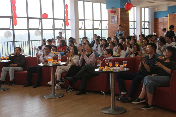 随着夜色的降临,家长们也来到C区食堂4楼参加我们院系学生干部干事为家长举办的接待酒会。我院李文娟老师、各教研室主任及其他院系的老师也莅临酒会现场。在何燕老师对各位家长的到来表示热烈欢迎后,酒会正式开始,啦啦操表演向家长展示了我们院系学生的青春活力,修空调小品也让家长们开怀大笑,《当你老了》的个人弹唱,唱出了同学们对家长的眷念和对父母的感恩之情。一系列表演让家长们见识了我院学生不一样的风采说,曾经害羞、不愿与他人交流的孩子成长了,让家长由衷地感到欣喜。表演结束后,我院教师也举杯与家长们进行了交流,听取家长对学校发展的意见和对学校的看法,也让家长们对我们学校的工作有了比较具体的了解。