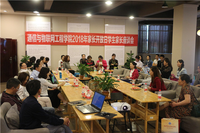 中午,学校特地安排家长与孩子在食堂用餐,不仅让家长们更加深入体验和了解了孩子在学校的生活环境,也借此机会,让分别数月的家长与孩子再一次亲密接触,促膝谈心,看到孩子为自己打饭,夹菜,吃完后主动把餐盘端到回收区,很多家长感叹,孩子长大了,会照顾人了……用完午饭后,家长们在志愿者的带领下,来到了行政楼C栋咖啡厅,参加14:30的家长座谈会。院长助理刘枚副教授首先致词,她对家长们的到来表示了热烈欢迎,同时也结合教务处工作对学校的育人发展模式、前景进行了简要介绍;之后,通信与物联网工程学院院长助理李文娟副教授为各位家长详细介绍了学校以及院系的办学理念和办学特色;紧接着双体系卓越人才教育基地软件技术培训经理张炼老师为大家讲述了双体系的概况;何燕老师也为家长们讲解了我院的完满教育情况。最后,通信与物联网工程学院院长毛期检教授讲话,他表示希望通过这次的座谈会能够和每一位家长紧密合作,创造一个良好的环境来帮助每一位学生成长。自由交流环节,家长们纷纷发言,很多家长都表示,在听了各位老师的讲解和这一天的参观了解之后,对学校的培养理念、培养模式以及学校为学生付出表示认同和赞赏,纷纷表示把孩子交到学校很放心,也有学生家长提出了一些建议和意见,比如希望老师在课外时间多与学生交流、关心鼓励学生养成良好的学习习惯;请学校严格要求学生,加强学生身体素质锻炼,制定并实施严格的作息管理制度等等,参会领导和老师与家长们进行了充分的交流,对家长们提出的疑问和建议也做了详细解答和记录。