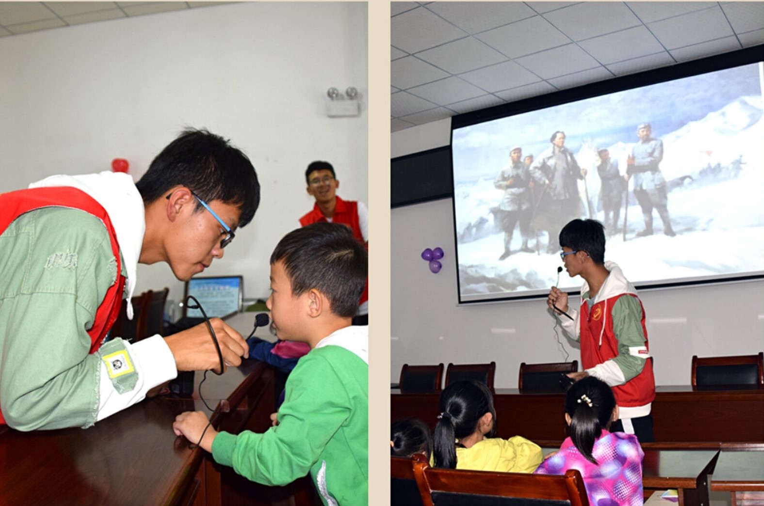 “红军不怕远征难,万水千山只等闲”,长征是中国革命成功一个非常重要的举措!为增强小朋友们心中对革命先烈的热爱与敬畏,丰富小朋友们的文化知识,志愿者为小朋友们分享了几个长征的小故事;穿行长草地,飞跨大雪山等!看着小朋友们踊跃的举手回答志愿者们提出的问题,并分享了自己心目中的英雄,志愿者们脸上洋溢着开心与满足,志愿之行,收获匪浅。