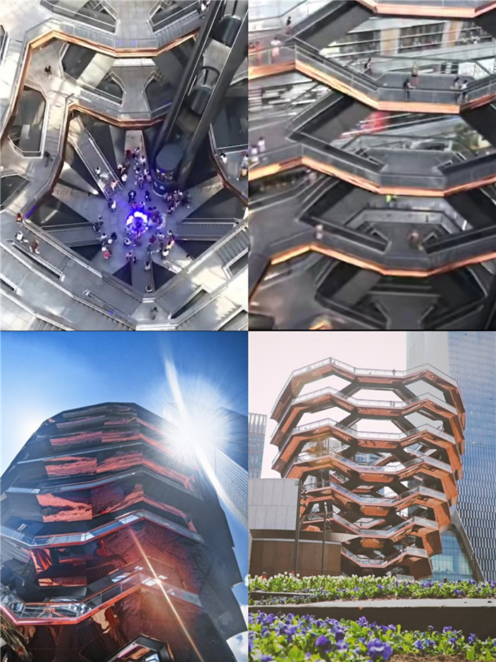 来到纽约,使我不得不想到曼哈顿,因为曼哈顿是纽约最富有的区,它被形容为整个美国的经济和文化中心,是纽约中央商务区所在地,世界上摩天大楼最集中的地区,当然曼哈顿是最不能错过的景象了。曼哈顿哈德逊广场(Hudson Yard)的“大松果”建筑,成为了我们参观的首选,今年3月份“大松果”才刚刚揭幕,各种奇特的、彷如科幻大片的“大松果”镜头立刻刷爆社交媒体。其实这座建筑目前暂时命名为Vessel,意为“船舶”,开发商正在征集一个正式名称,“大松果”的名字是在中国人微信圈传开的,非常的恰如其分,尤其是远距离看时,的确就像一个巨大松果,不过也有很多人认为它像马蜂窝。为了亲眼目睹“大松果”,我们提前两周在网上订票,准备开启此次哈德逊园区的观光游览。