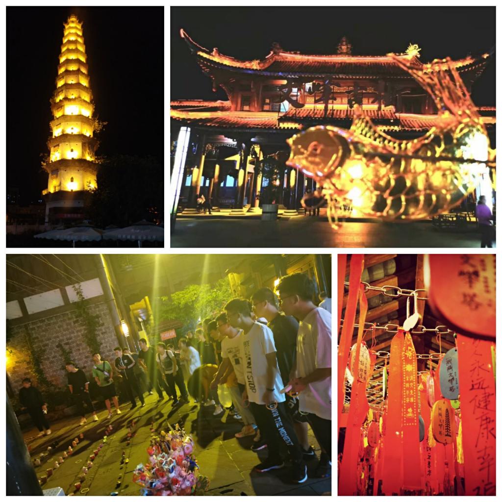 秋天的阳光,格外柔和,晚霞一层层铺开,映在参赛者脸颊。他们开始长达150分钟的坚韧徒步行——步行前往合川区文峰古街。途经滨江路,迈出青龙街,踏过涪江一桥,一路相互鼓励,抵达了文峰古街,青春的笑容洒在脸上。映入眼帘的是广场上老少相聚一隅欢快交谈的场景,给人愉悦和温暖。古街上精致的小礼品,千年古文化——糖画制作,挂满心愿的祈愿墙,还有壮美的白塔,在灯光的映衬下显得更加辉煌,参赛者被眼前的场景所吸引,纷纷表示明白了此次活动的意义,坚持与拼搏之后,便是风景近在眼前。