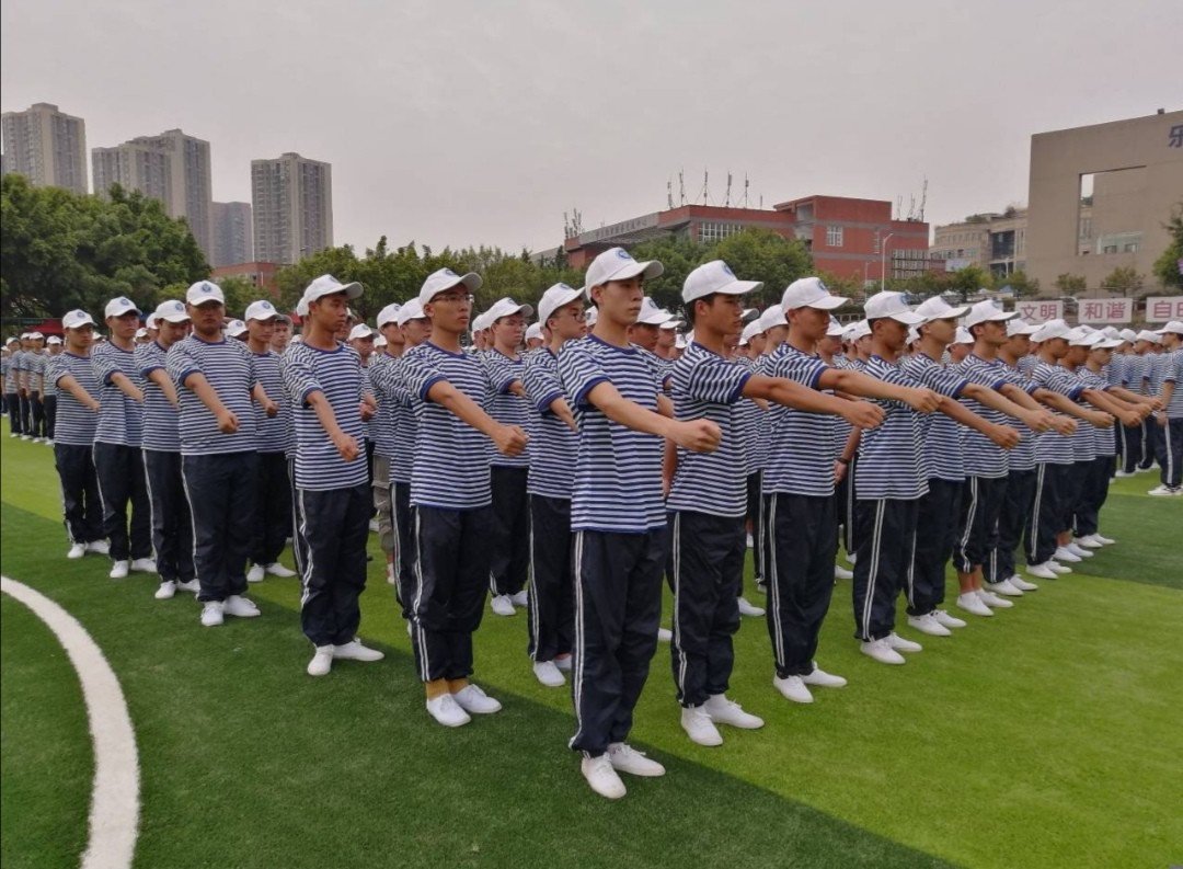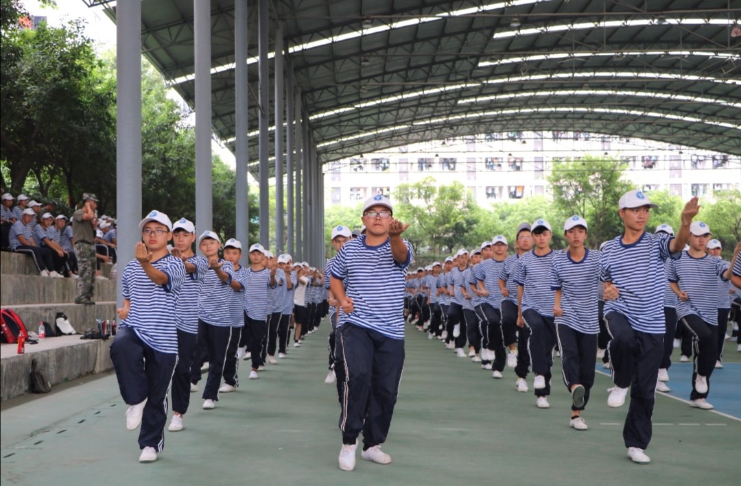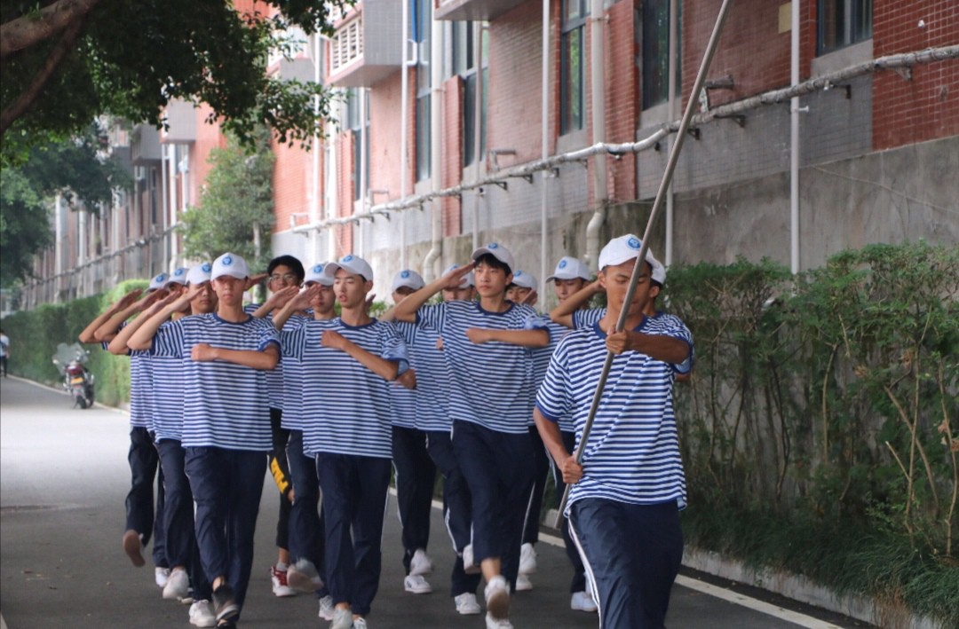 分列式的男生们锐利坚定的眼神,挺直的手臂,整齐的步调,铿锵的口号。烈日灼烧,风雨吹打,并没有挫伤他们,反而越战越勇,以饱满的精神面貌面对最后的汇报表演。